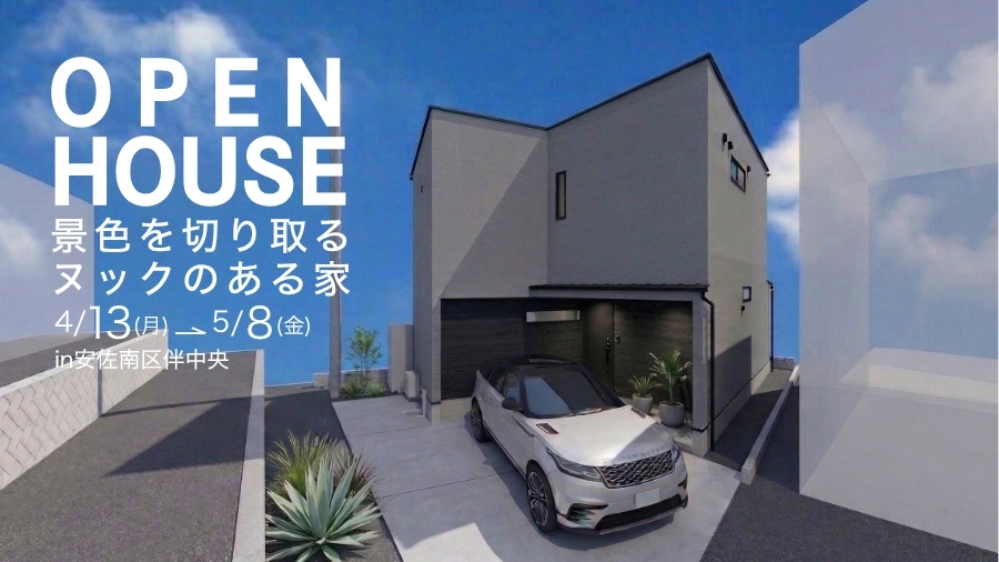 期間限定で完成見学会を開催いたします。敷地は安佐南区伴中央。大きな窓から景色を愉しむ『ヌック』のある約29坪のお住まいです。…